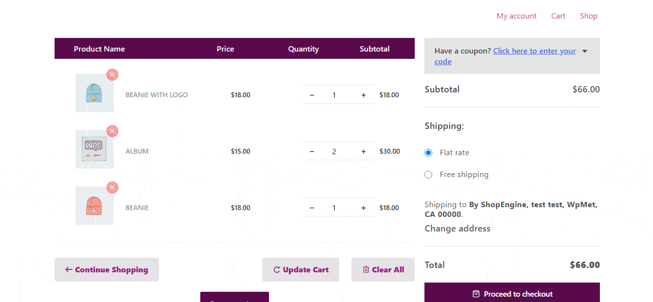 Below are some Snapshots of WordPress eCommerce Functionality: